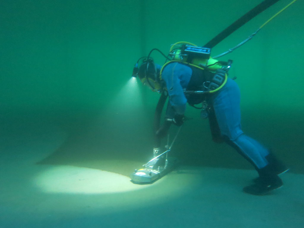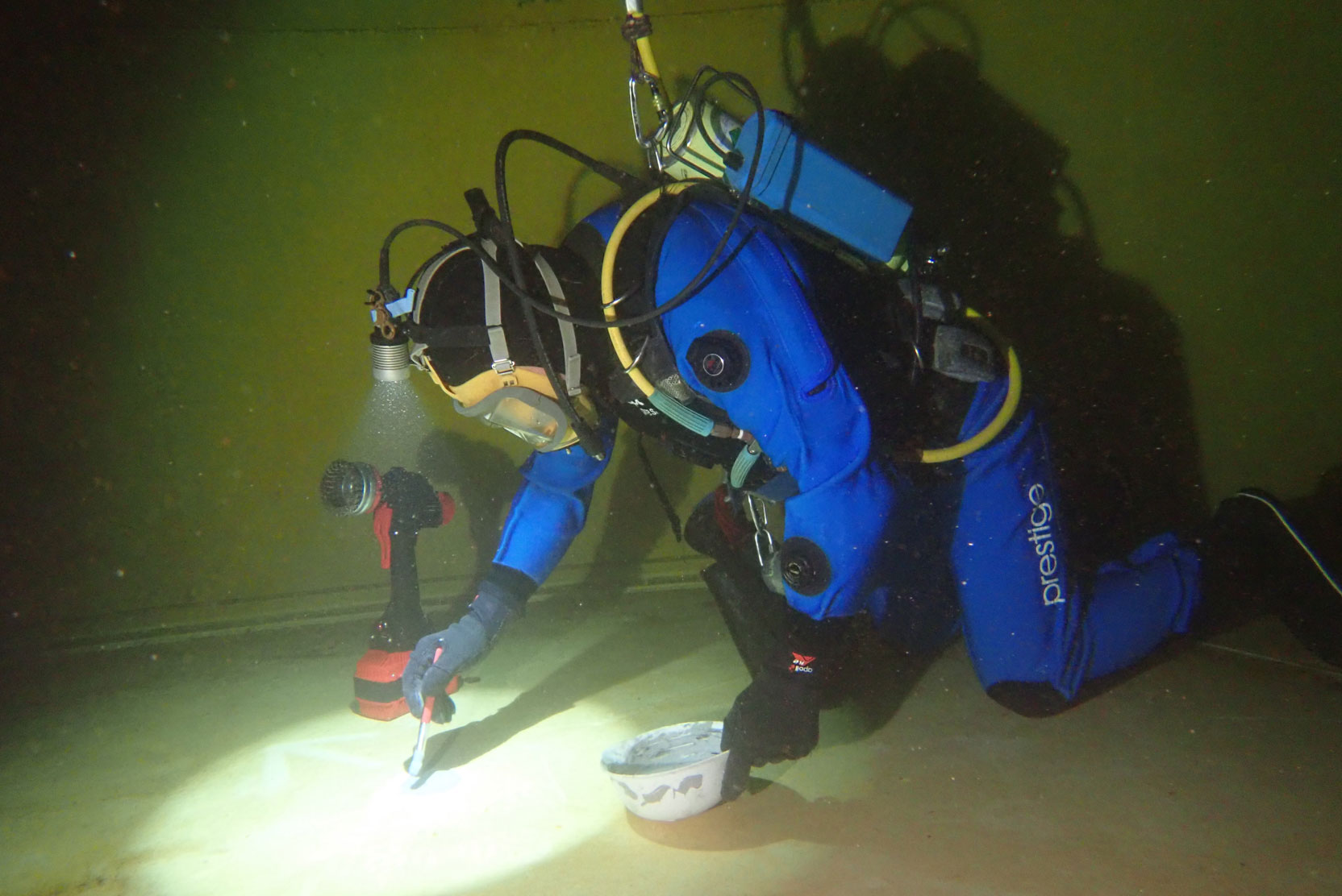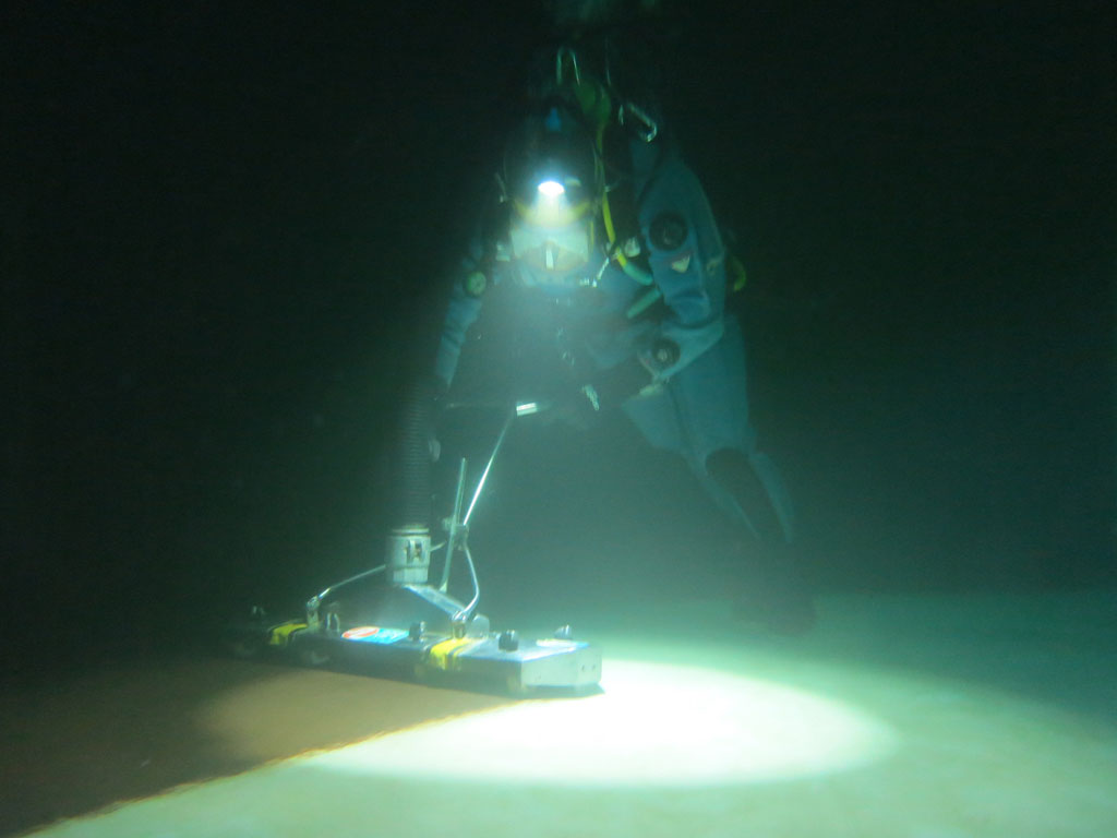 Diver vaccuming floor