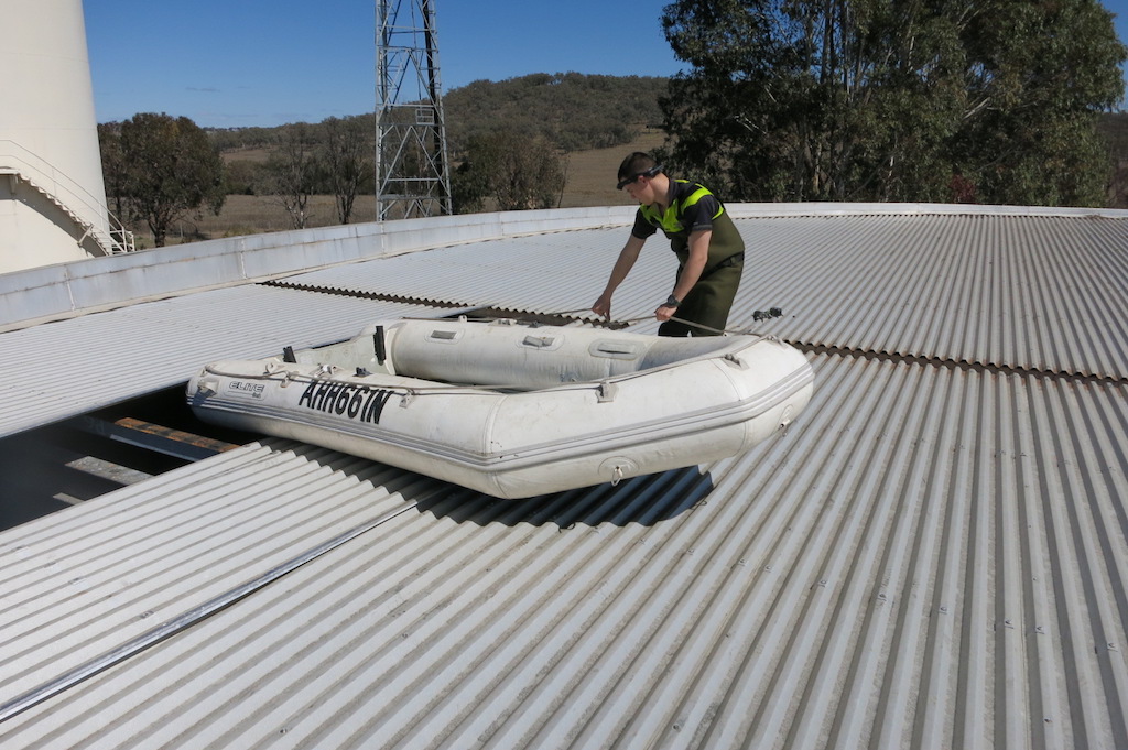TAG Diving used its inflatable boat (dedicated to potable water) to install new stainless steel mesh around the eaves of the reservoir from the inside.