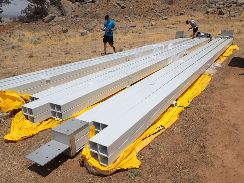 The fibreglass reinforced plastic (FRP) posts were delivered to the site wrapped. As the reservoir had to remain online, great care was needed to keep all materials entering the water hygienic and free from any contaminants.