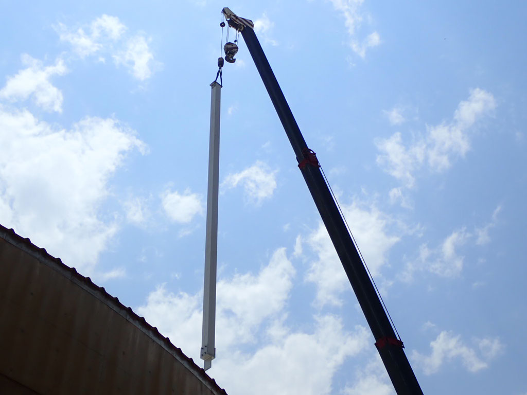 All posts were secured to the base with dynabolts and the top of the posts were secured onto the existing purlins prior to removing old posts. The old corroded posts were removed with the crane and stacked externally for removal from site.