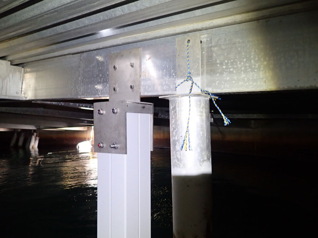 A crane lift was used to move the posts into position in the reservoir (all posts were disinfected prior to entering the water supply). Divers entered the tank to receive the post bases and position them correctly, communicating between themselves and the surface via comms system.